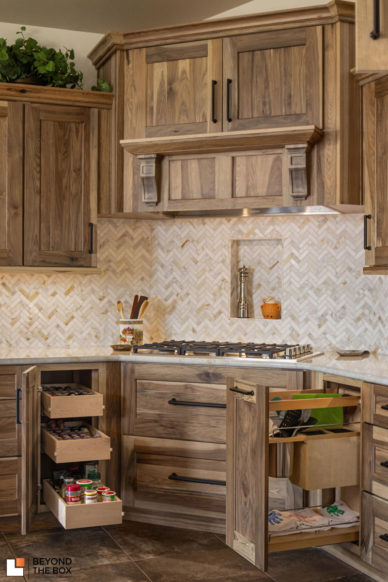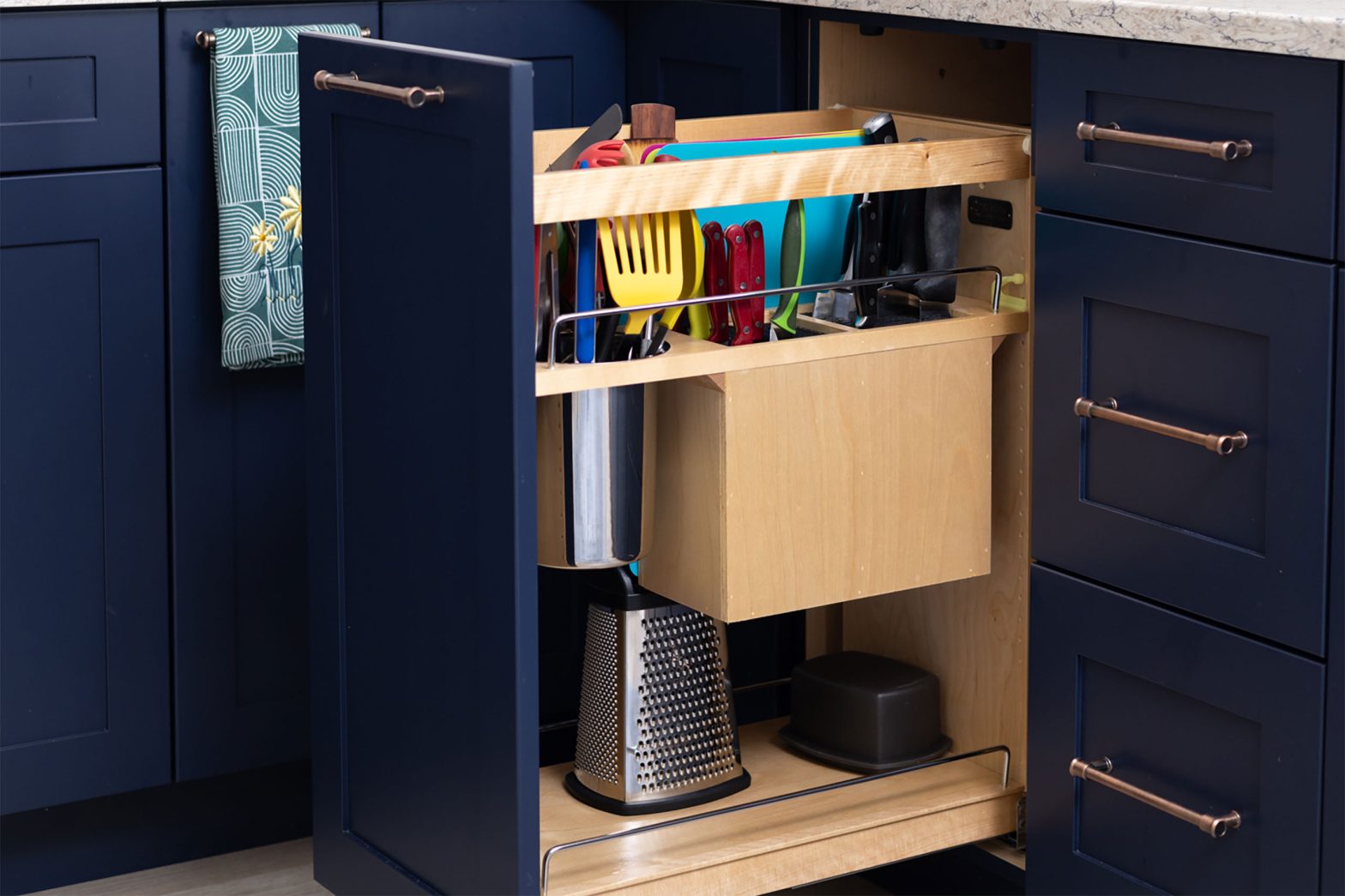 From slim spice pull-outs to hidden utensil organizers, pull-out storage is one of those features you’ll never want to live without. It keeps everything organized, easy to reach, and out of sight. Bonus points for making your kitchen feel totally custom.